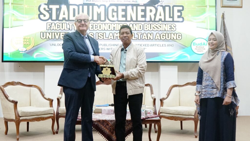 Fakultas Ekonomi dan Bisnis (FEB) Unissula menghadirkan akademisi kelas dunia dalam kuliah umum internasional. Hadir Prof Bruno S Sergi BSSc MSc MPhil PhD, profesor di Harvard Center for International Development Harvard Kennedy School. Sekaligus profesor kehormatan FEB Unissula. Kuliah umum bertajuk Unlocking Opportunities: Publishing Scopus-indexed Articles and Book Chapters with Emerald Insight digelar di Aula FEB Unissula, Selasa (16/9/2025).