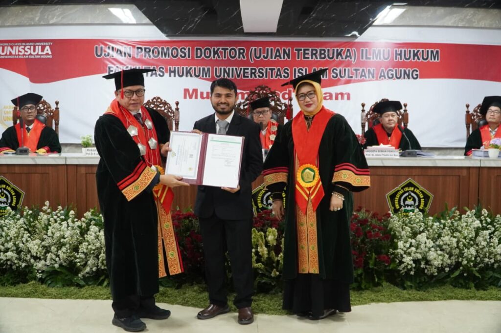Inspiratif! Mahasiswa Pakistan Sukses Menyandang Gelar Doktor Hukum Unissula dengan IPK 3,99